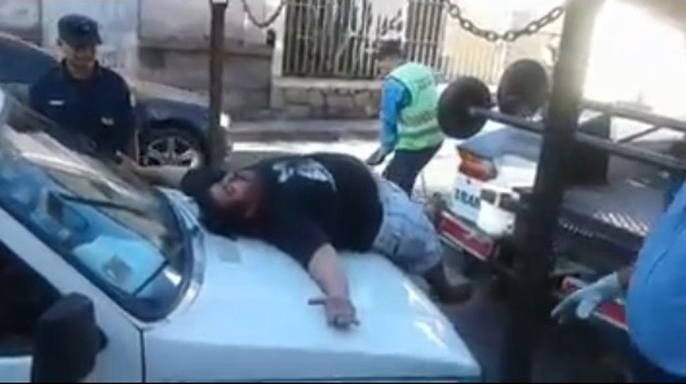 Recostado sobre la trompa de su auto, y a los gritos, intenta impedir que los oficiales de tránsito de Salta le secuestren el vehículo.¡Ayuda, ayuda!, pedía el desesperado hombre. El operativo se dio en la esquina de calles San Juan y Santa Fe, en el macrocentro salteño.