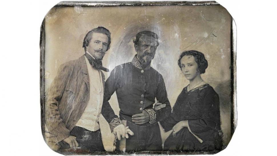 GREGORIO ARÁOZ DE LA MADRID. El general aparece al centro, con su hija Berenice y su yerno, en sus últimos años.