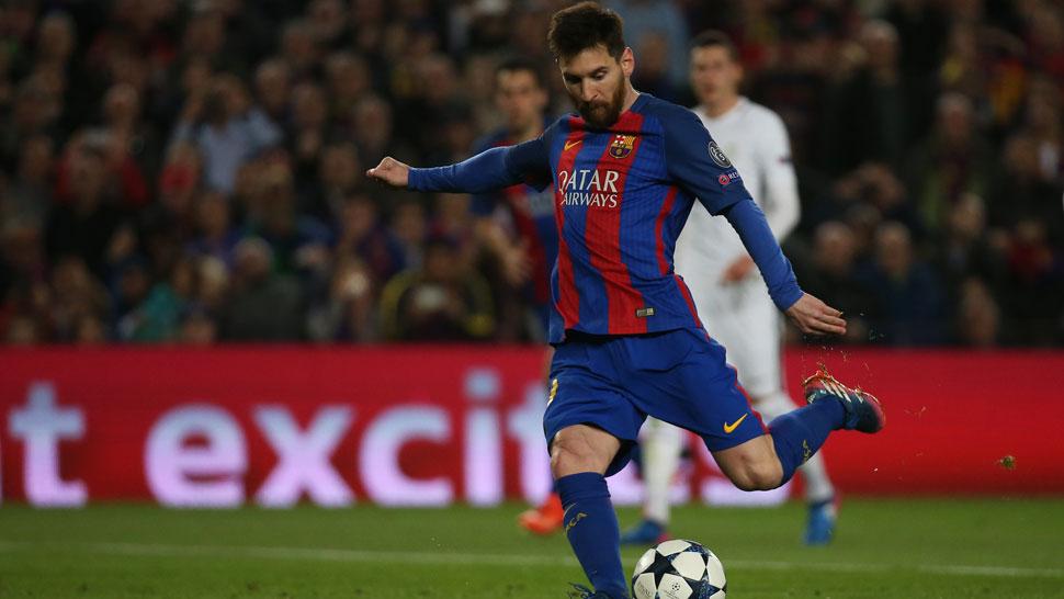 LIONEL MESSI. El delantero del Barcelona patea el penal que convirtió en el partido contra el PSG. REUTERS