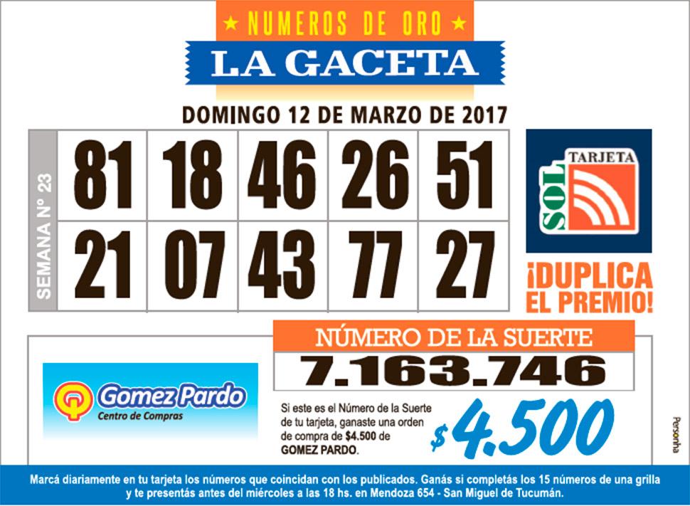 Los Números de Oro de LA GACETA