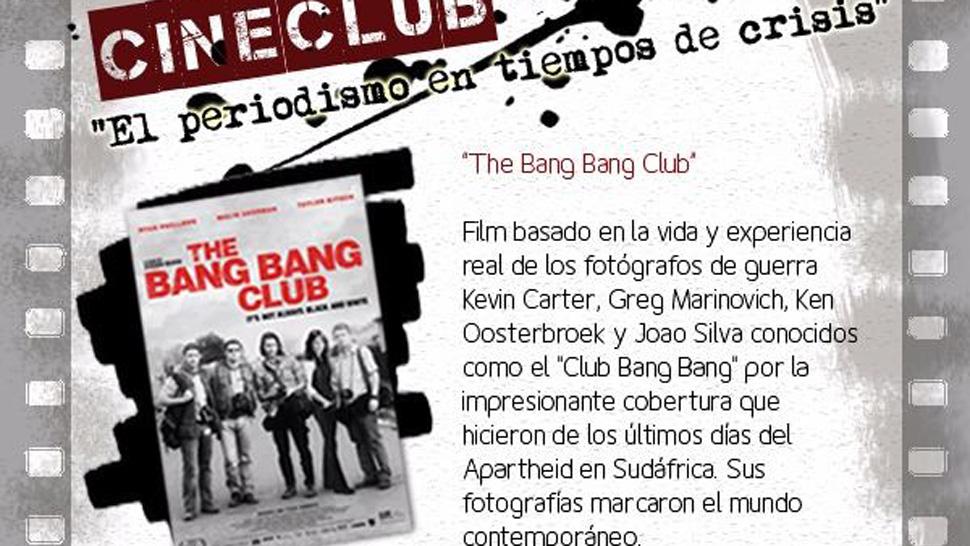 El "Cine Club del Centro Cultural y Político Mariano Ferreyra" se pondrá mañana nuevamente en acción con la proyección de "The Bang Bang Club", el film basado en la vida y experiencia de los fotógrafos de guerra Kevin Carter, Greg Marinovich, Ken Oosterbroek y Joao Silva (conocidos como el "Club Bang Bang" por la cobertura que realizaron sobre los últimos días del Apartheid en Sudáfrica).