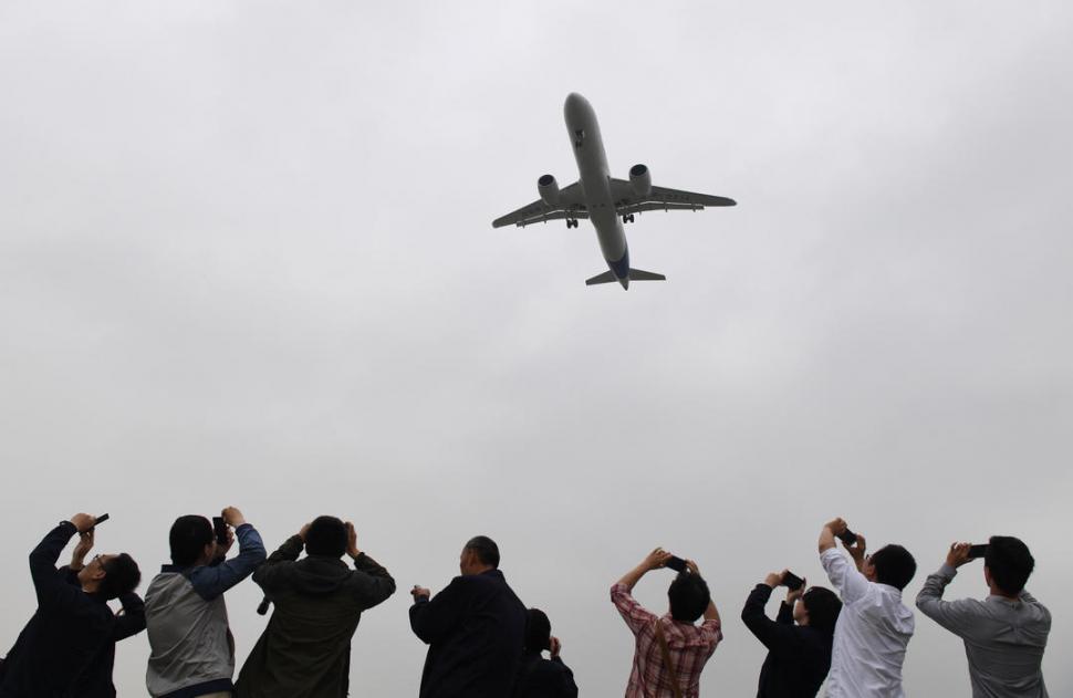 VUELO INAUGURAL. Los chinos saludan la aeronave de fabricación propia. reuters