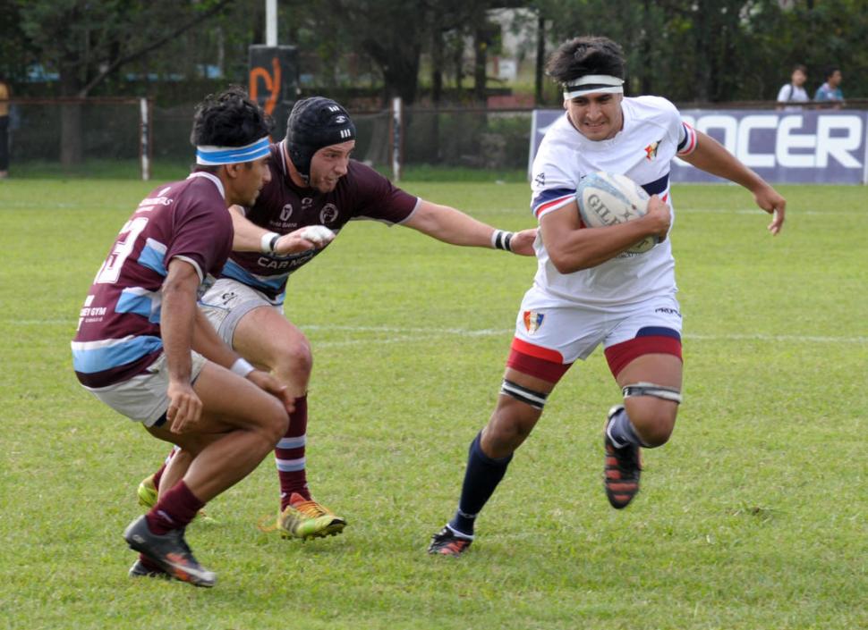 ¡ES MÍA! El segunda línea, Martín Ramayo, intenta escaparse con la ovalada ante la marca de dos rivales de Jockey Club. la gaceta / Foto de José Nuno