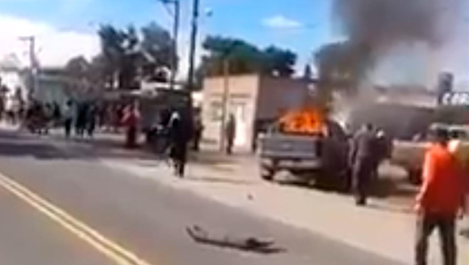 Un video que circula en las redes sociales muestra el instante en que es incendiada la camioneta que protagonizó ayer un accidente con una moto en El Chañar, en el que murió una mujer de 38 años. En las imágenes, compartidas por el periodista Jorge Rodríguez, se observa a numerosas personas que se acercan a la 4x4, le prenden fuego, y la empujan fuera de la ruta 304, donde se produjo el siniestro en el que perdió la vida Karina Bibiana Rojas.