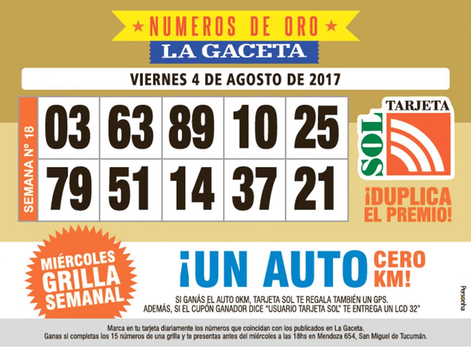 Los Números de Oro de LA GACETA del 21 de febrero de 2026