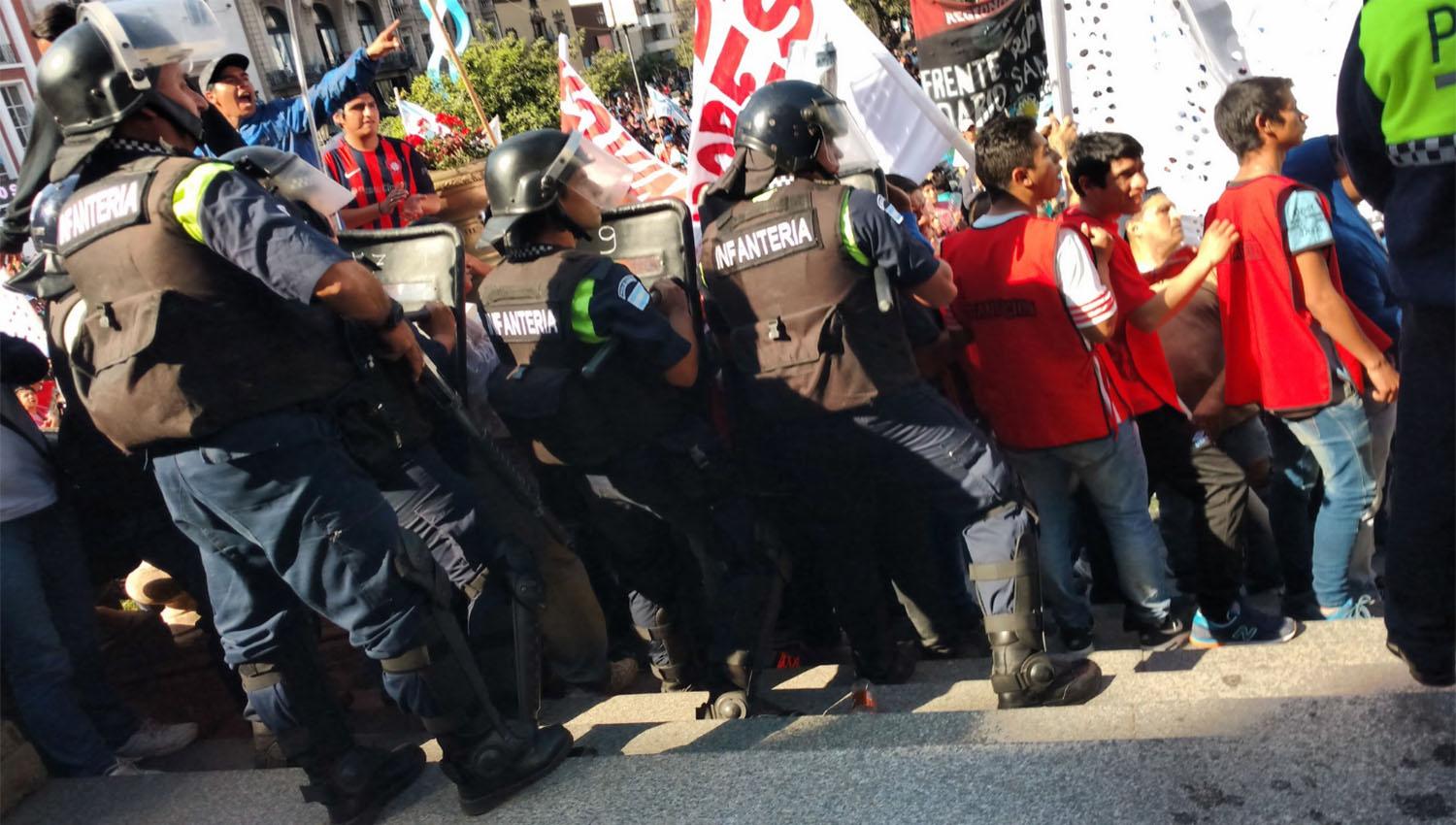 Integrantes del Frente Popular Darío Santillán denunciaron que la Policía agredió esta tarde a militantes de esa fuerza política mientras marchaban enfrente de la Casa de Gobierno.