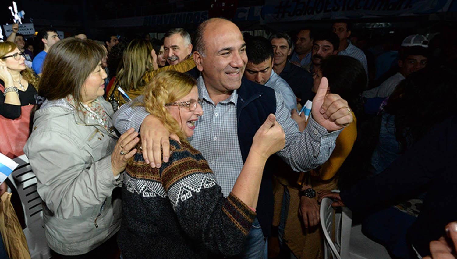 El gobernador Juan Manzur saluda y abraza a una vecina. IMAGEN TOMADA DE COMUNICACIONTUCUMAN.GOB.AR.
