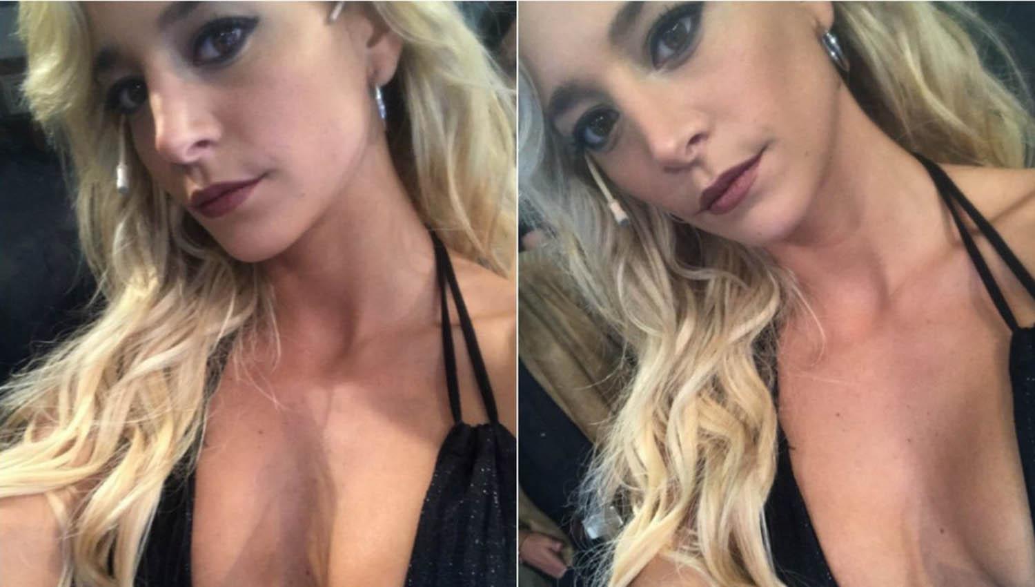 Ocurrió cuando la joven se agachó hacia adelante para leer los comentarios de sus seguidores y la parte de arriba se corrió y dejó ver de más.