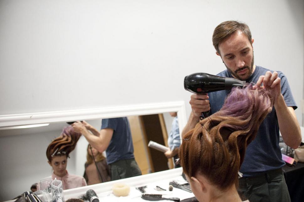 Horas antes de brindar la clase, Jeremy se mueve al rededor de una modelo como si fuese una abeja zumbando cerca de una flor. La toca, se hace para atrás y la mira en detalle, hasta que vuelve a rozarla. Prepara a una de las mujeres que estarán con él en el escenario, donde explicará cómo aplicar los colores pastel o fantasía. Cerca de él circulan alrededor de 20 personas que integran el equipo de la marca francesa.