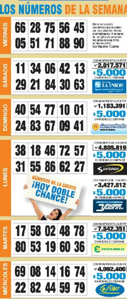 Como cada miércoles, se publicó la grilla completa de los Números de Oro de LA GACETA para que los lectores puedan revisar sus tarjetas. Aquellos que completen los 15 números de una de las grillas de su cartón deberán presentarse en calle Mendoza 654 hasta las 18, que cierra la semana número 23 de Números de Oro. En caso de que el ganador sea usuario Tarjeta Sol, duplica el premio.