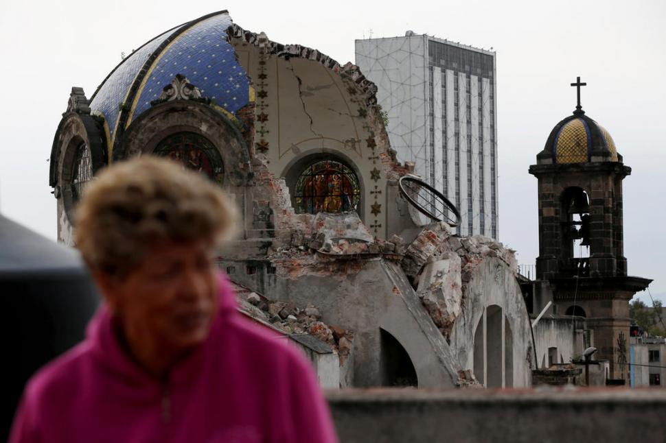 VESTIGIO DEL DESASTRE. La cúpula de la iglesia de Nuestra Señora de los Ángeles no sobrevivió el terremoto. Reuters