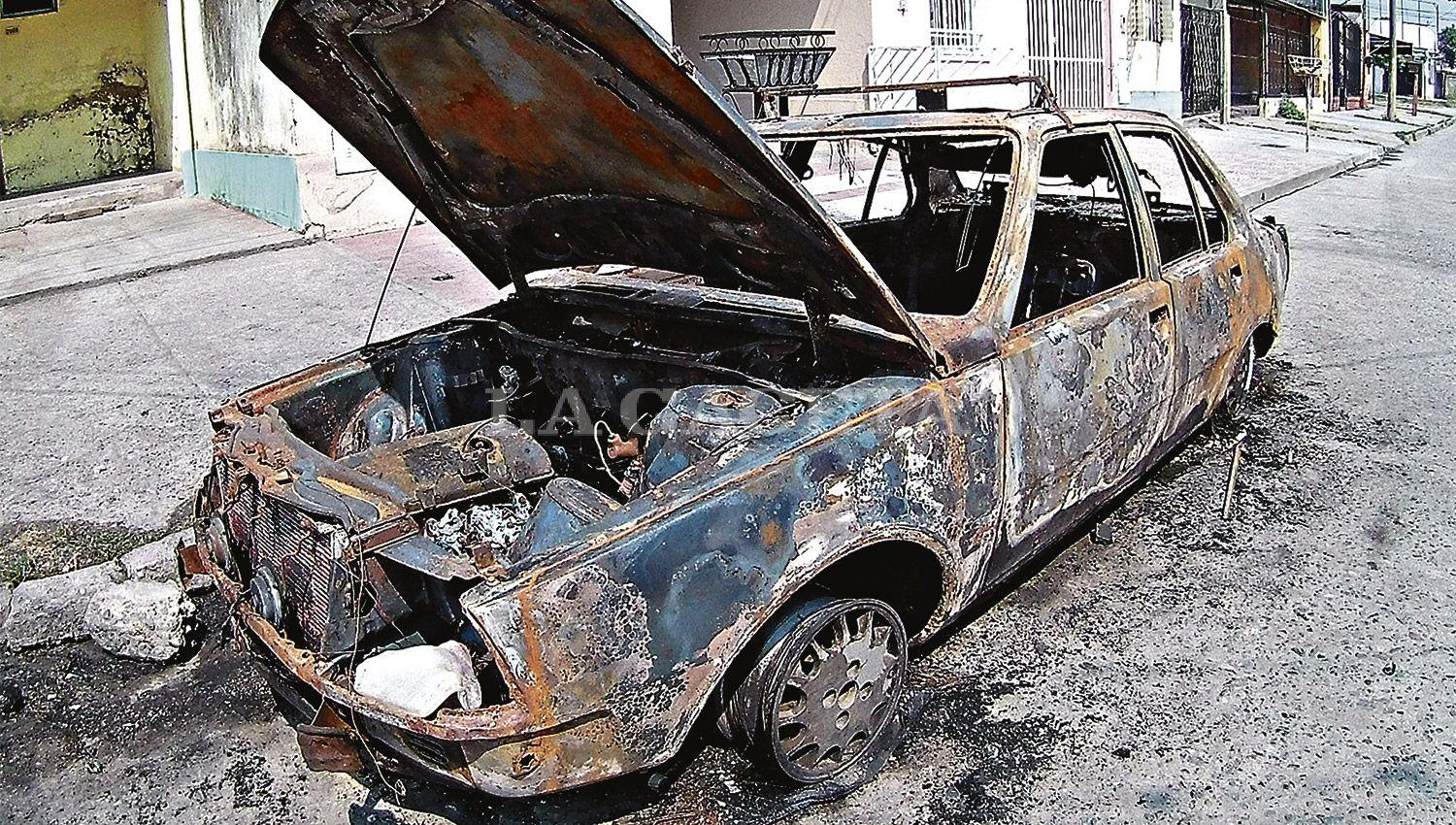 VEHÍCULO INCINERADO. Uno de los tres automóviles que se consumieron tras el ataque con bombas molotov. LA GACETA / FOTO DE OSVALDO RIPOLL