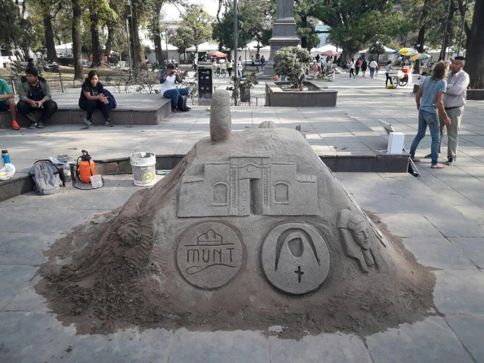 -Escultura efímera construida en arena fina por Diego Civitelli, artista plástico de Córdoba. El diseño está inspirado en figuras vinculadas con los museos tucumanos.