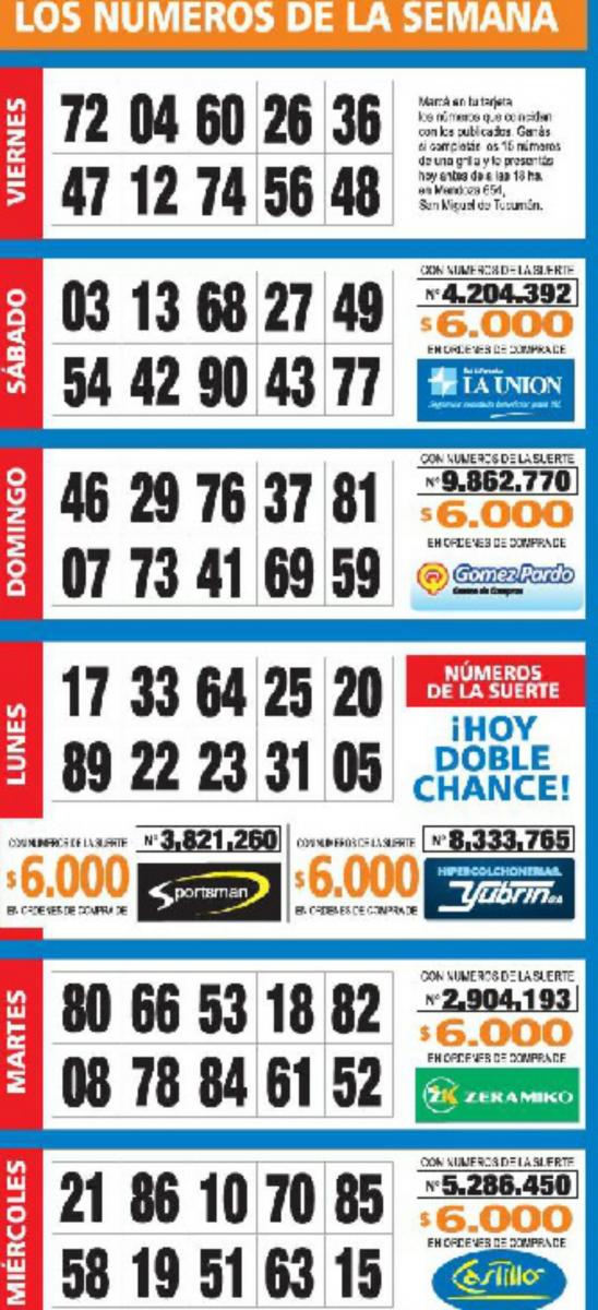 Como cada miércoles, se publicó la grilla completa de los Números de Oro de LA GACETA para que los lectores puedan revisar sus tarjetas. Aquellos que completen los 15 números de una de las grillas de su cartón deberán presentarse en calle Mendoza 654 hasta las 18, que cierra la semana número 2 de Números de Oro. En caso de que el ganador sea usuario Tarjeta Sol, duplica el premio.