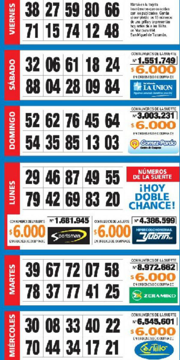 Como cada miércoles, se publicó la grilla completa de los Números de Oro de LA GACETA para que los lectores puedan revisar sus tarjetas. Aquellos que completen los 15 números de una de las grillas de su cartón deberán presentarse en calle Mendoza 654 hasta las 18. En caso de que el ganador sea usuario Tarjeta Sol, duplica el premio.