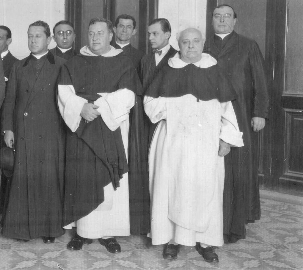 FRAY ANGEL MARIA BOISDRON. Aparece al extremo izquierdo, en sus últimos años. A su lado están fray Gonzalo Costa y monseñor Abraham Aráoz.