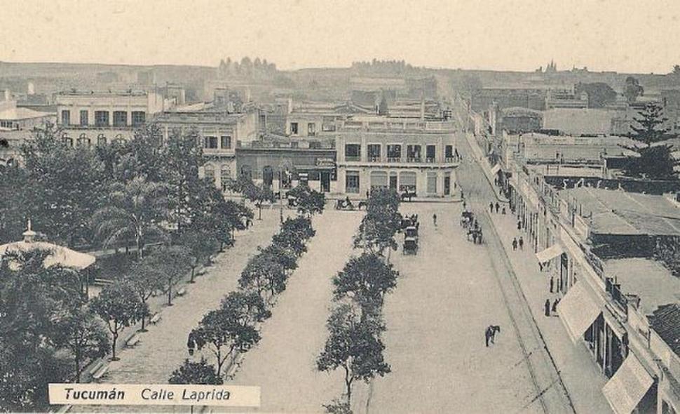 SAN MARTÍN Y LAPRIDA. La intersección y un sector de la plaza Independencia, en una tarjeta postal de 1910.