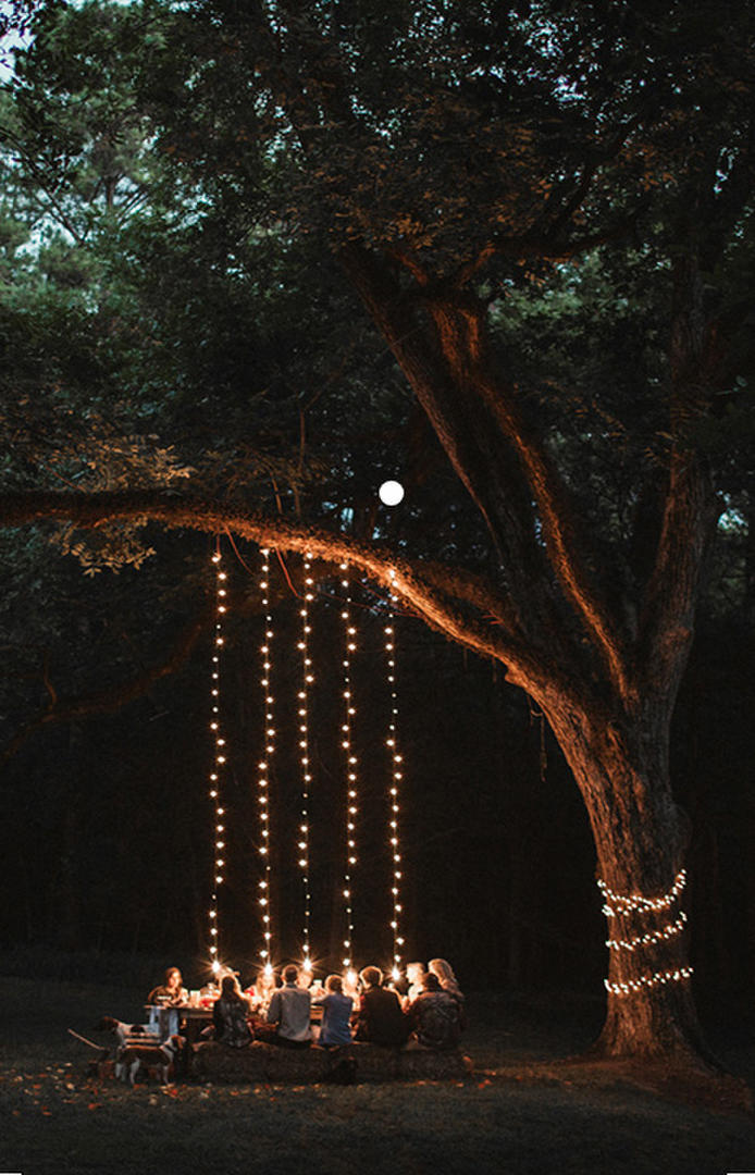 EFECTO. Para una cena al aire libre, mejor iluminar con luces colgantes.