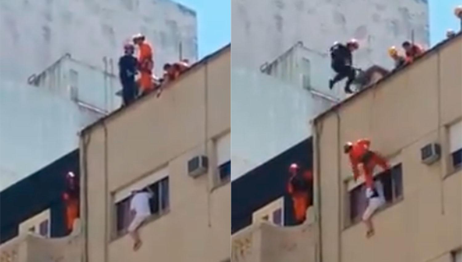 Video: la certera maniobra que usaron los bomberos porteños para evitar un suicidio
