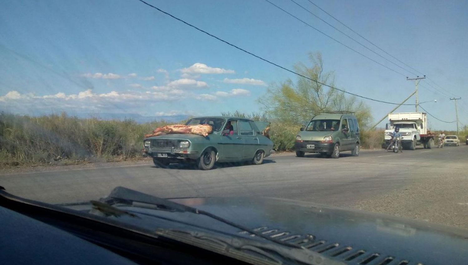 Un camión que transportaba carne de un frigorífico intentó esquivar una moto y terminó volcado al costado de la ruta 155, en San Juan. Lo curioso fue que decenas de personas saquearon la mercadería y se la llevaron, incluso, en el capot y en los techos de sus autos. Después de que las fotos se hicieran virales, se confirmó que los dueños de la carne habían autorizado a la gente a llevársela.