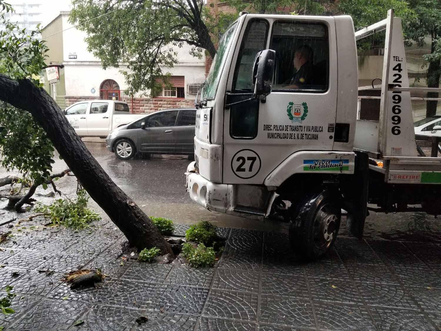 Pudo haber sido una tragedia: un camión de tránsito se subió a una vereda y tiró abajo un árbol ubicado en la calle Marcos Paz al 700.