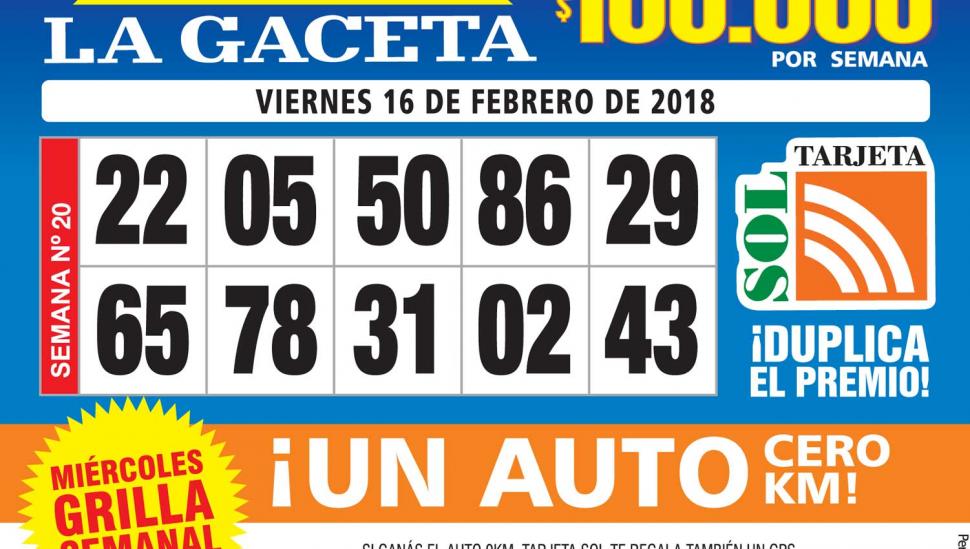 Los Números de Oro de LA GACETA del domingo 22 de febrero de 2026