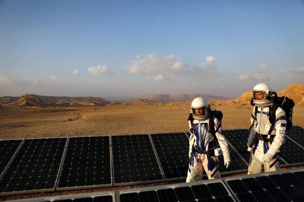 Científicos israelíes participan en un experimento de simulación de vida en Marte, en el marco del proyecto D-MARS de la Agencia Espacial de Israel, en Mitzpe Ramon, zona elegida por su similitud geológica con Marte. Usan sólo trajes espaciales y no tendrán contacto con personas que no sean parte de la iniciativa. El objetivo es examinar el impacto psicológico bajo condiciones marcianas.