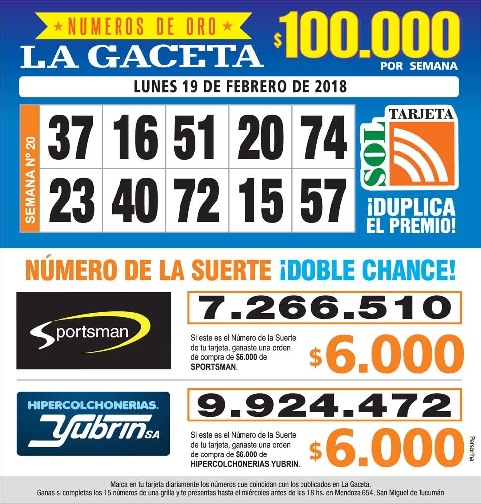 Los Números de Oro de LA GACETA del domingo 22 de febrero de 2026