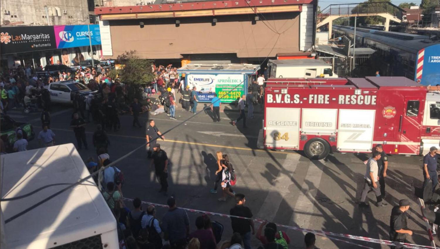 Por la fuerza del golpe, el camión terminó arriba de la vereda, donde atropelló a varias personas. Intentan determinar si cruzó con las barreras bajas.
