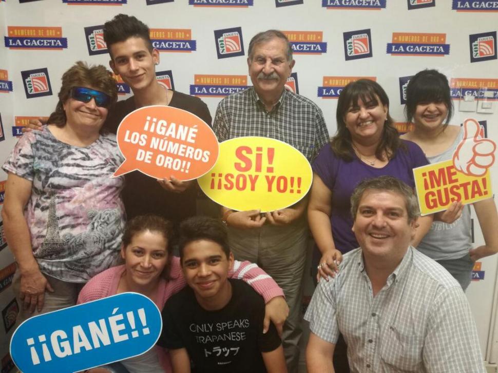 TODOS JUNTOS. Deborah (abajo, de rosa) y Raúl (con bigotes y camisa escocesa) posan junto con sus familiares luego de recibir los premios.