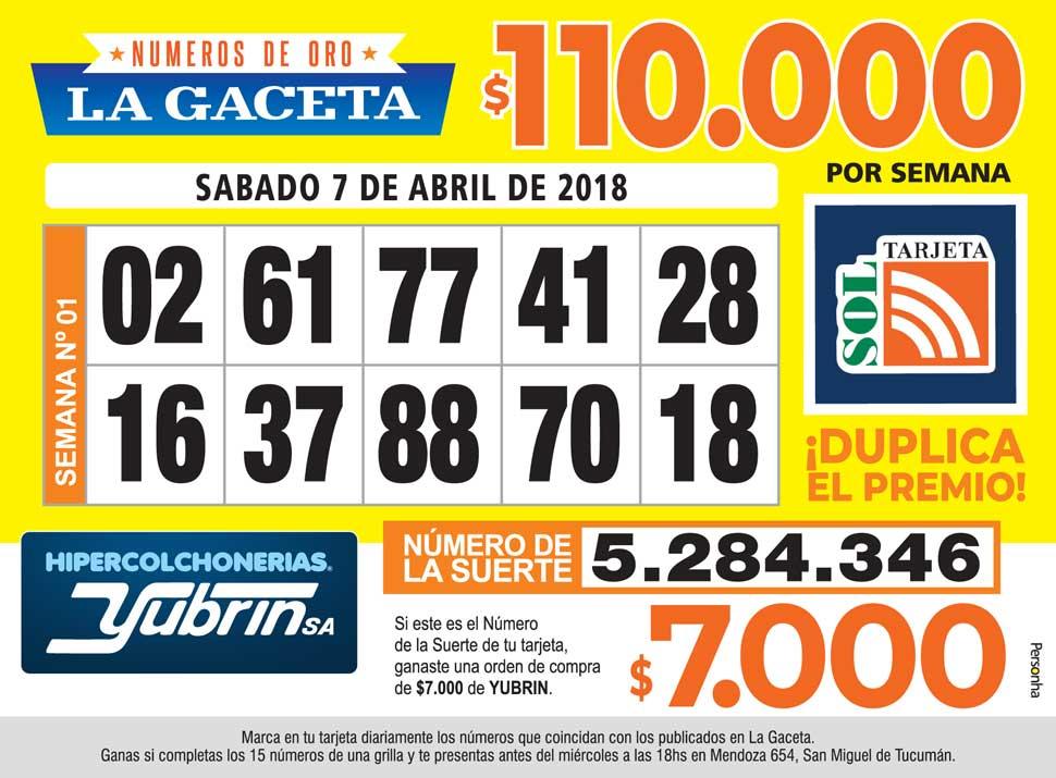 Los Números de Oro de LA GACETA del 21 de febrero de 2026