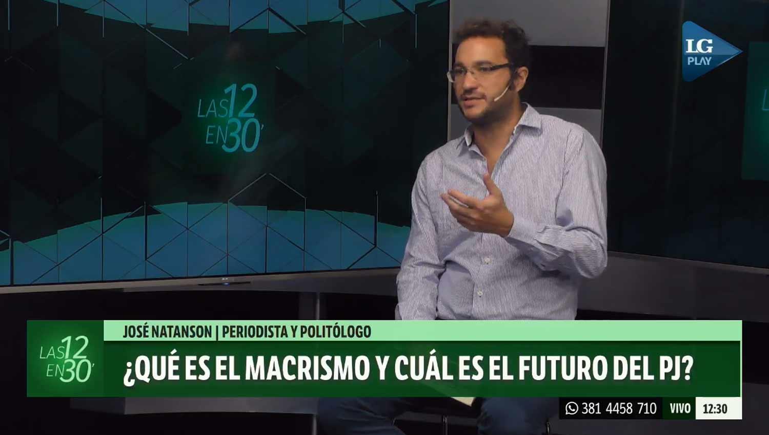 El rápido ascenso de Cambiemos al poder y sus proyecciones en el futuro político del país fueron analizados por el periodista y politólogo José Natanson, que visitó los estudios de LG Play para brindar una entrevista en "Las 12 en 30". "(Mauricio) Macri logró que la gente a la que le había ido mal lo votara", aseguró el también director editorial de Le Monde Diplomátique.