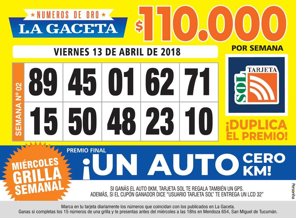 Los Números de Oro de LA GACETA del 21 de febrero de 2026