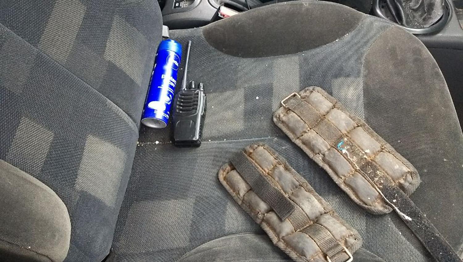 ELEMENTOS PARA ROBAR. La radio para inhibir alarmas y los objetos para romper vidrios. FOTO GENTILEZA POLICÍA DE TUCUMÁN