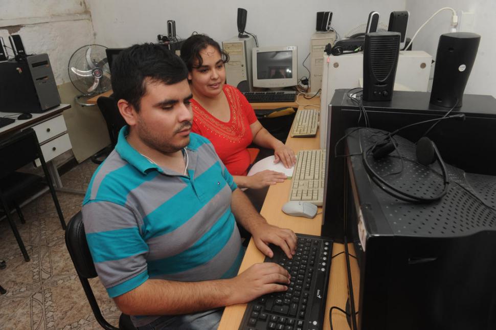 EN PLENA TAREA. Exequiel Figueroa y Yaneth Galovard trabajan en la filial Tucumán de la Red Mate. LA GACETA / FOTO DE ANTONIO FERRONI.-