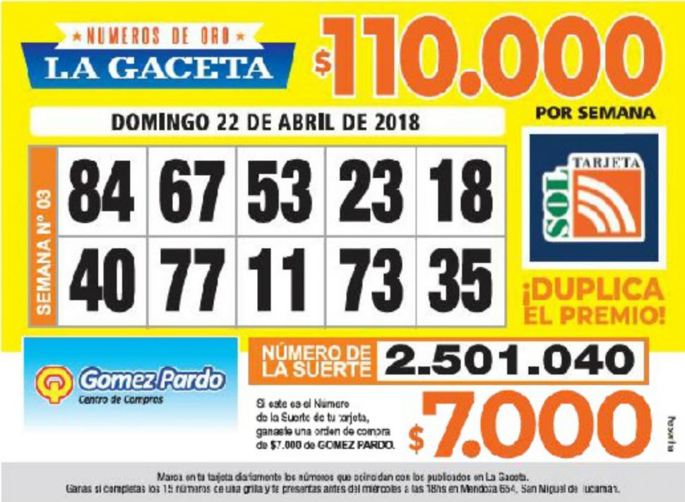 Los Números de Oro de LA GACETA del domingo 22 de febrero de 2026