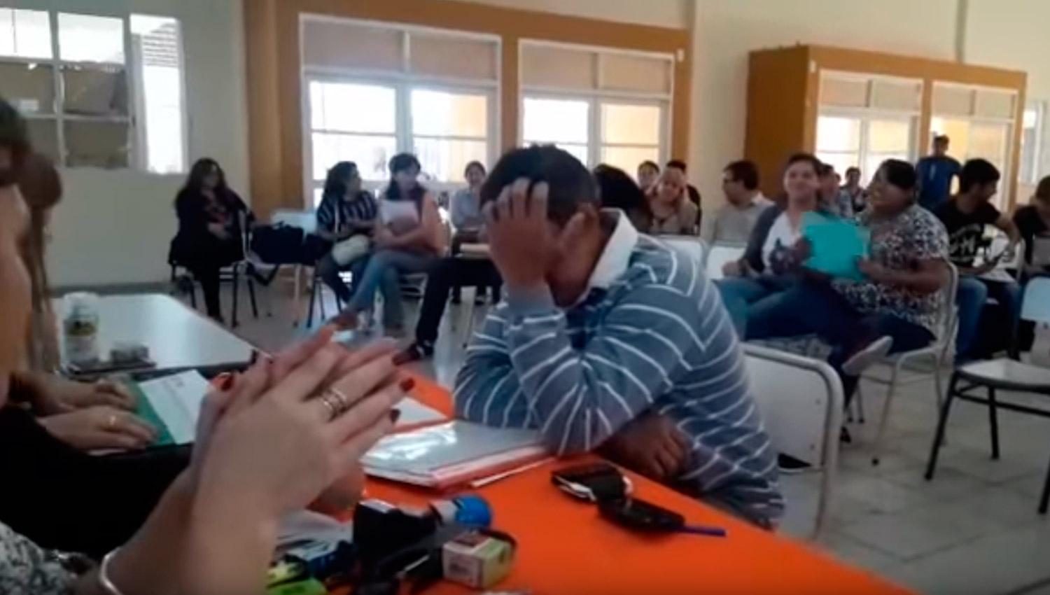Video: un docente se emocionó hasta las lágrimas al obtener un cargo por primera vez