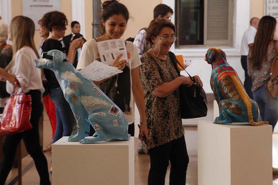 “Proyecto Jauría” es una iniciativa de la Secretaría de Extensión de la Facultad y la muestra podrá verse hasta mañana en Ayacucho 491. La definición de jauría en el diccionario es clara: conjunto de perros que participan en una caza. Pero está ausente esa ferocidad en las esculturas. En diciembre se entregó a los egresados que quisieron participar de esta experiencia medio centenar de moldes de perros, todos idénticos. y cada artista le puso su marca, la que lo diferencia de los demás. “Son perros de la calle, comunes, lo que nos permite visibilizar además estas situciones”, señaló la secretaria del área académica de Artes, Adriana Plaza.