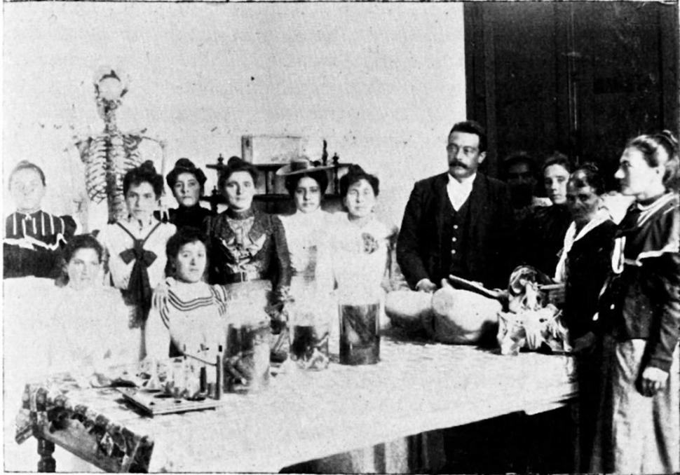 DOCTOR CARLOS A. VERA. El distinguido médico tucumano con alumnas de la Escuela de Obstetricia que fundó.