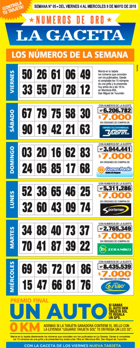 La grilla completa de los Números de Oro de LA GACETA: ¡el pozo es de $330.000!