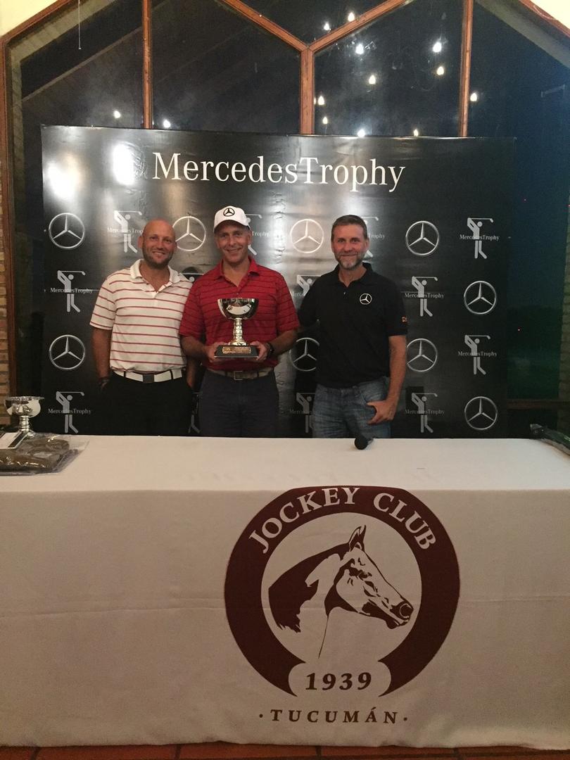 CAMPEÓN. Nicolás Remis levanta el Mercedes Trophy junto a los organizadores. foto de Pedro Caram