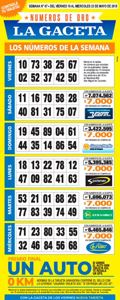 Como cada miércoles, se publicó la grilla completa de los Números de Oro de LA GACETA para que los lectores puedan revisar sus tarjetas. Aquellos que completen los 15 números de una de las grillas de su cartón deberán presentarse en calle Mendoza 654 hasta las 18. En caso de que el ganador sea usuario Tarjeta Sol, duplica el premio. El pozo acumulado es de $ 220.000.