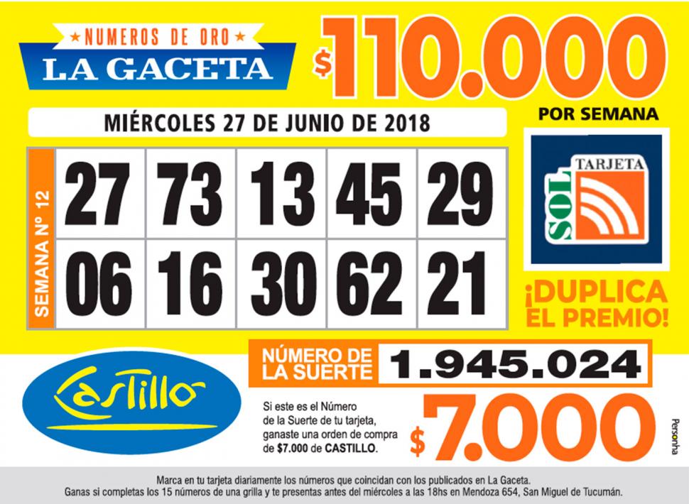 Los Números de Oro de LA GACETA del 21 de febrero de 2026