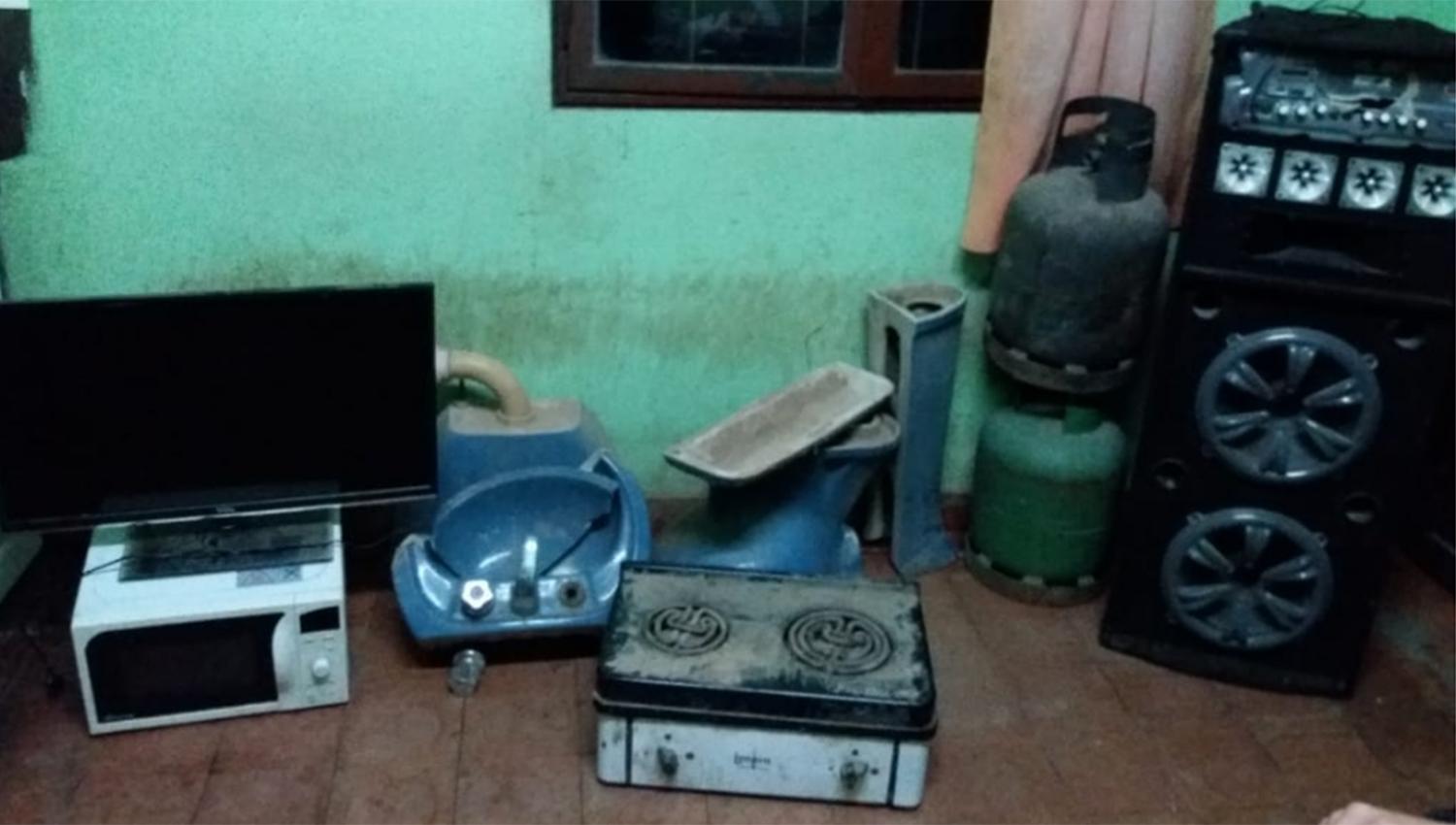 El procedimiento arrojó como resultados el secuestro de un televisor LCD de 32 pulgadas, un anafe, un microondas, dos garrafas de 10 kilos cada una, un equipo de música, un juego de baño (inodoro, lavabo, un pie y una mochila de inodoro con tapa) y elementos de una salamandra.