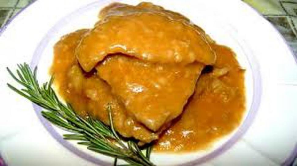 Ingredientes: 1 bondiola de cerdo de 1,5 kg en bifes de unos 5 cm de ancho, 2 cebollas grandes picadas, 1 l de caldo de gallina, 3 dientes de ajo picados, 2 potes de crema de leche, 250 g de mostaza, aceite de oliva, sal y pimienta.