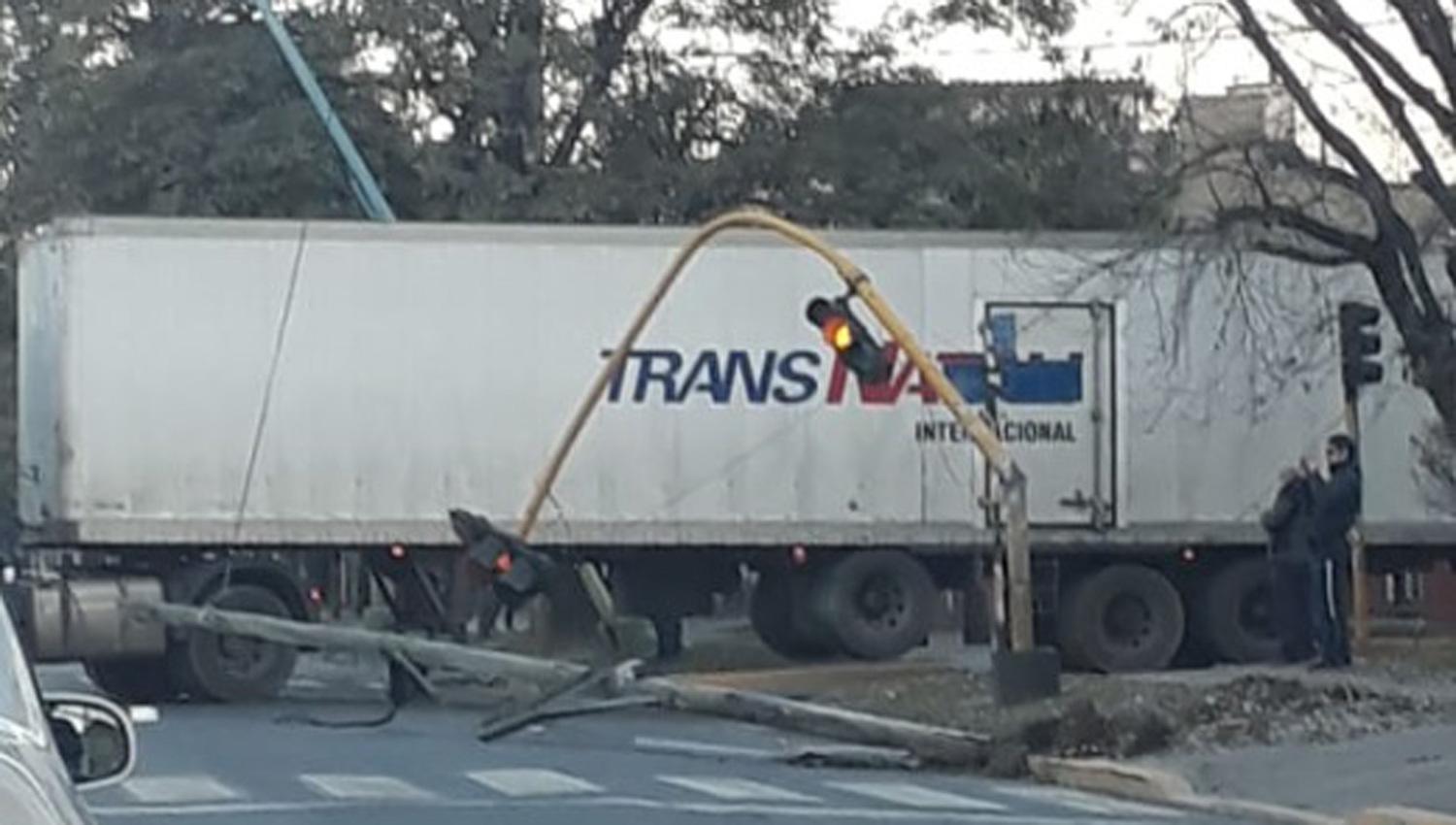 Un camión se llevó puesto un cable que sostenía un semáforo en plena avenida Mate de Luna y la situación generó caos en el tránsito.