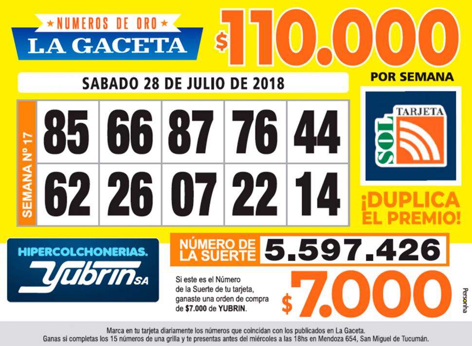 Los Números de Oro de LA GACETA del 21 de febrero de 2026