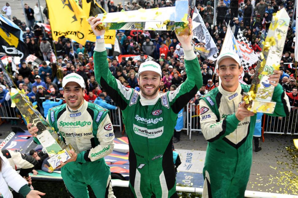 TODOS FELICES. Ponte, Canapino y Alonso (de izquierda a derecha) celebran en el podio ante una multitud de fanáticos. prensa actc
