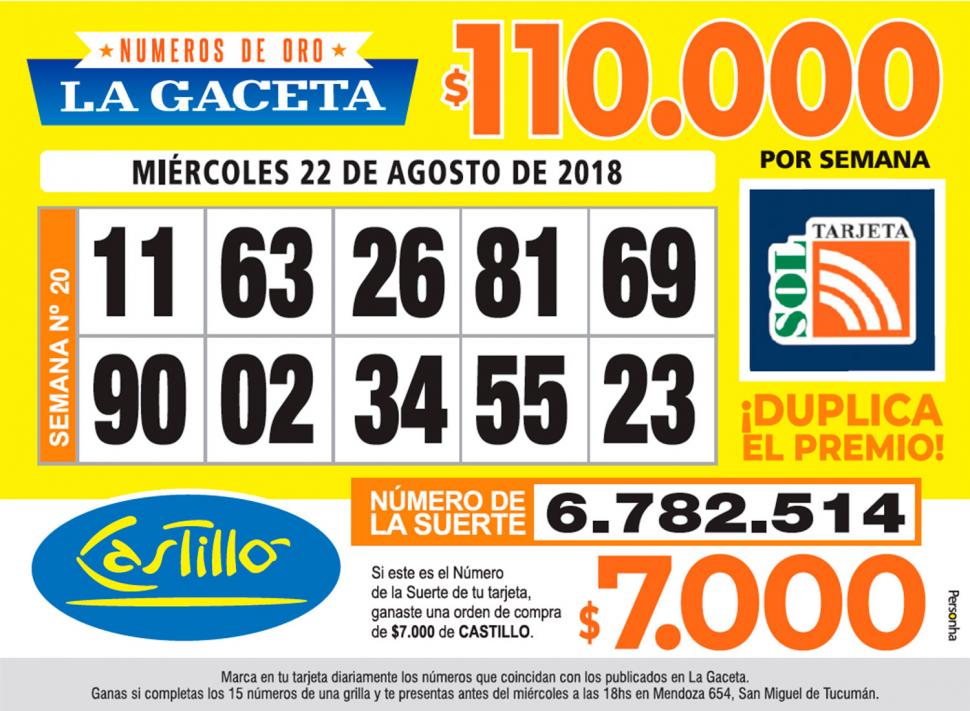 Los Números de Oro de LA GACETA del 20 de febrero de 2026