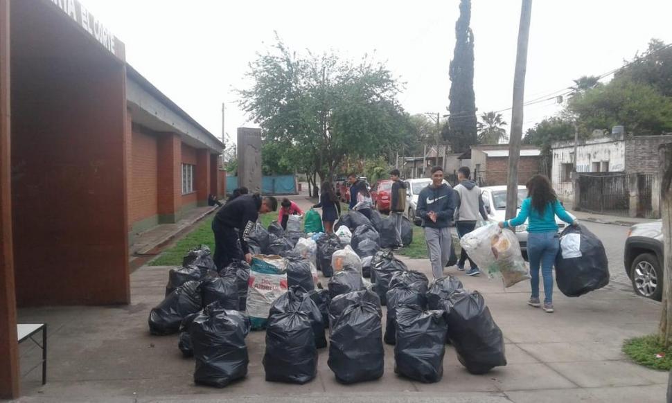 EN ACCIÓN. Alumnos de El Corte de Alderetes juntaron botellas y ya sacaron de circulación unas 112.000.